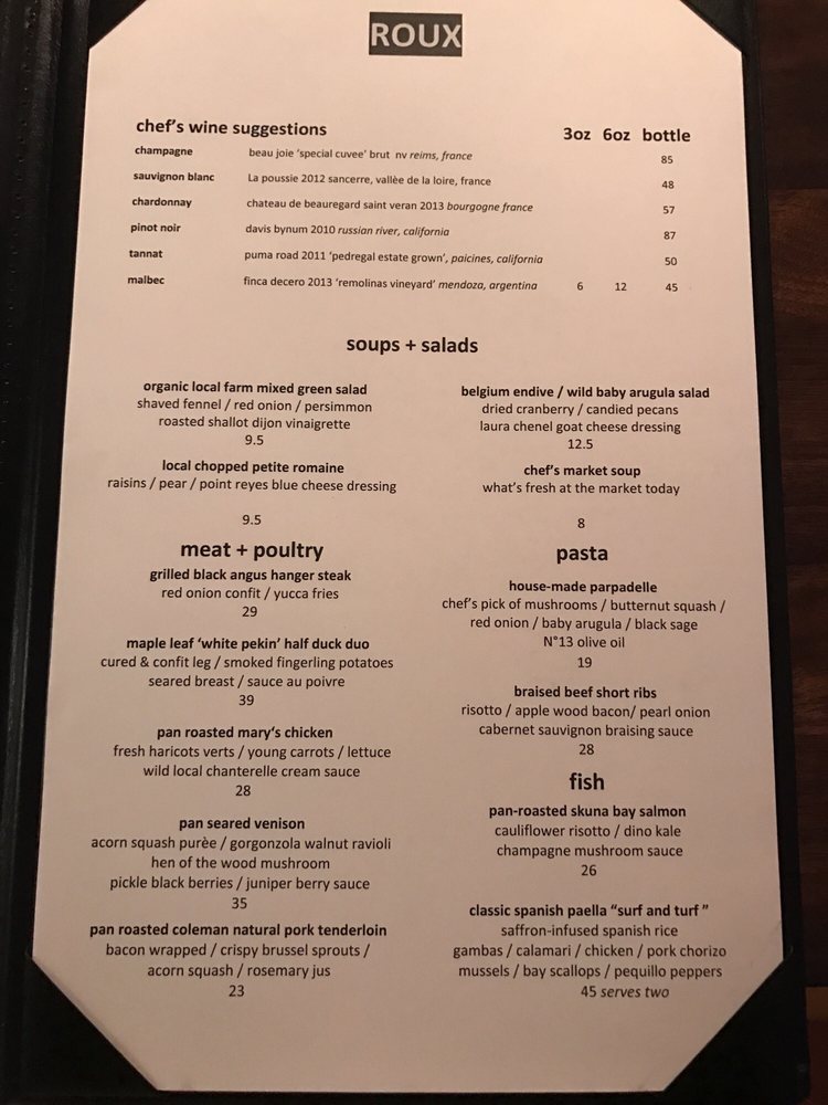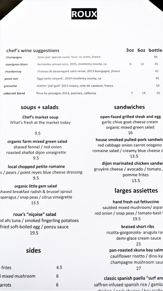 Introducing ROUX, a Latinx-owned restaurant located in Carmel Valley, CA. This intimate spot offers a casual dining experience with an eclectic menu featuring seafood pasta, Brussels sprouts, scallops, chicken sandwich, BLAT sandwich, and more. Customers rave about the well-prepared and presented dishes, friendly service, and luxurious flavors. The restaurant provides a range of dining options including vegan choices, outdoor seating, and gender-neutral restrooms. With options for takeout, delivery, and catering, ROUX caters to a diverse crowd looking for high-quality cuisine in a cozy setting. Don't miss out on the top-notch food and impeccable service at this slice of heaven in Carmel Valley.